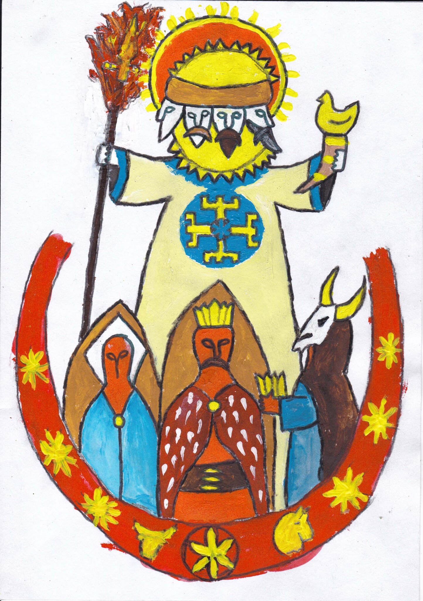 Symboly: slnečný kotúč, svarga, zlatý koč, biely kôň, plamenný meč, slnečnica, buk, zlato, zasvätená sobota.