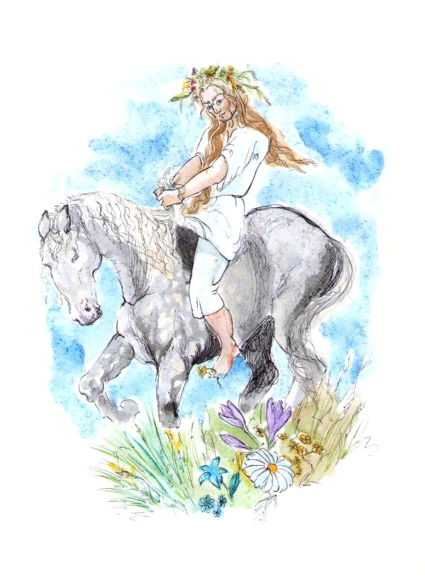 Zobrazenie: Jeho najčastejším zobrazením je švárny mládenec v bielom plátenom rúchu na šedom koni s bosými nohami, s vencom z jarných poľných kvetov na hlave, divoko jazdiaci poľami, lesmi a záhradami.